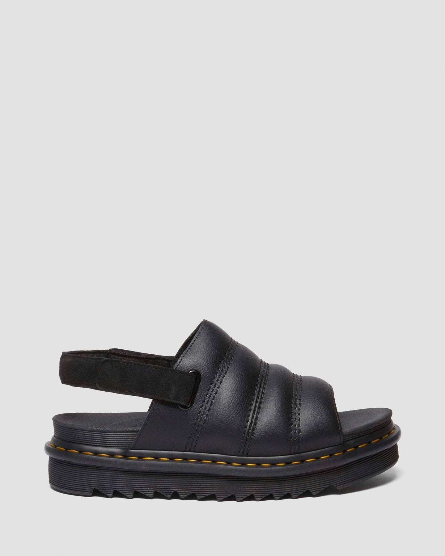 Relax, it’s summer. Our new Kole sandal combines a pillow-soft padded upper with a super-lightweight sole — so you can take your home comforts for a spin on the street. The moulded SoftWair footbed and EVA sole will feel like walking on air, while the adjustable Ripstop strap helps you find the perfect fit. Finished with signature DM’s yellow welt stitching.