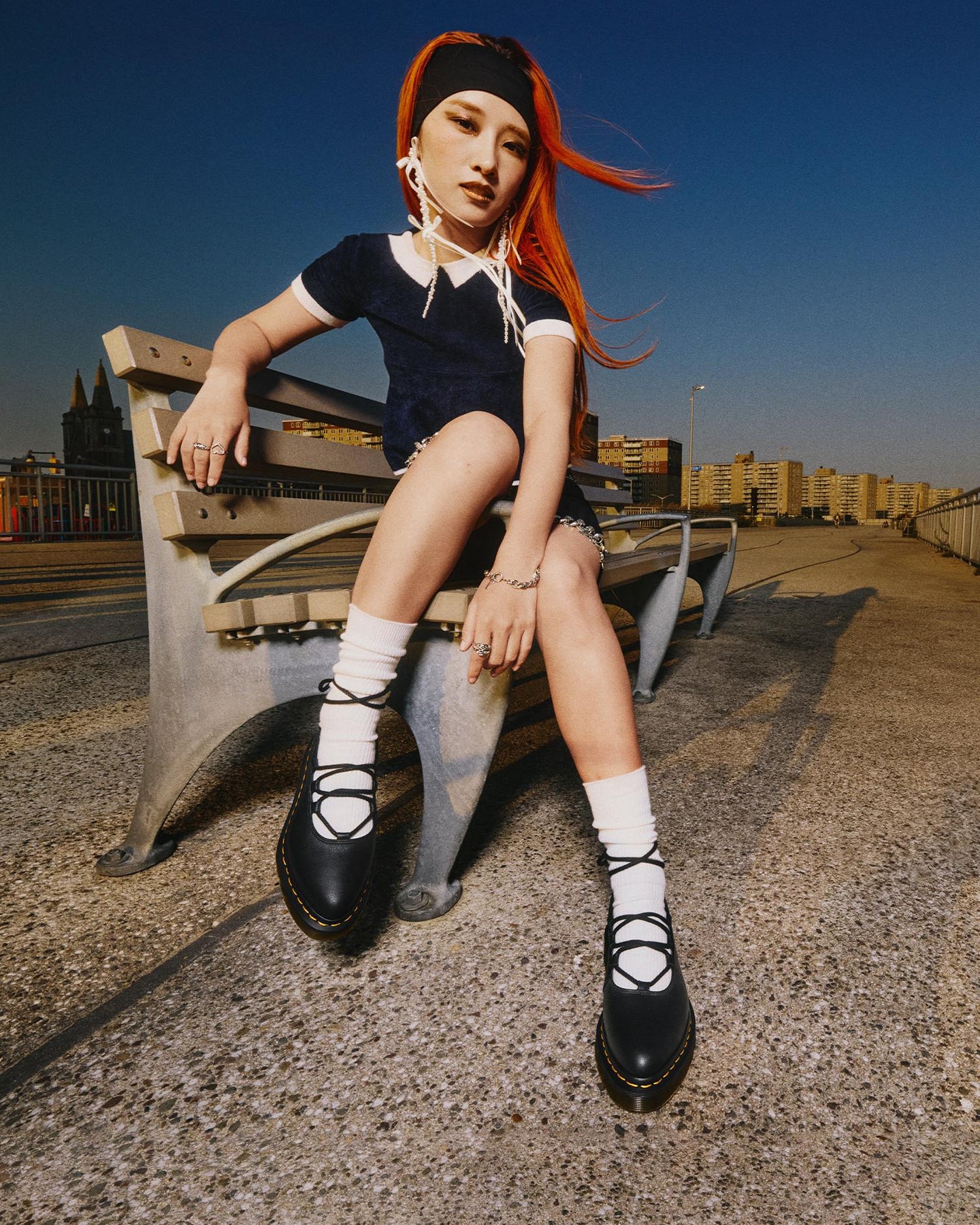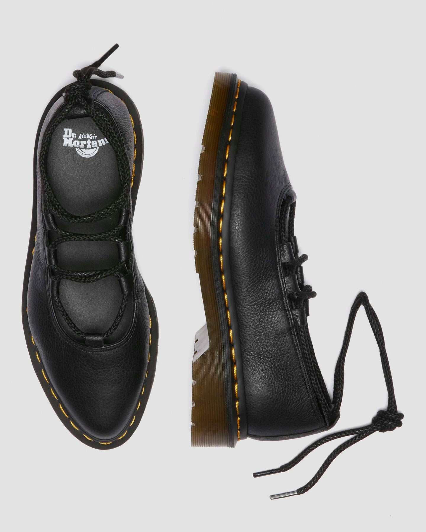Get to the point. The Elphie ballet flat is our twist on a classic. Less dainty. More Doc’s. A pointed ballet flat shoe made from soft Virginia leather. Fitted with wraparound laces — easily swapped out for a customised look. The tapered sole is marked with DM’s signature grooving pattern and secured with yellow welt stitching.