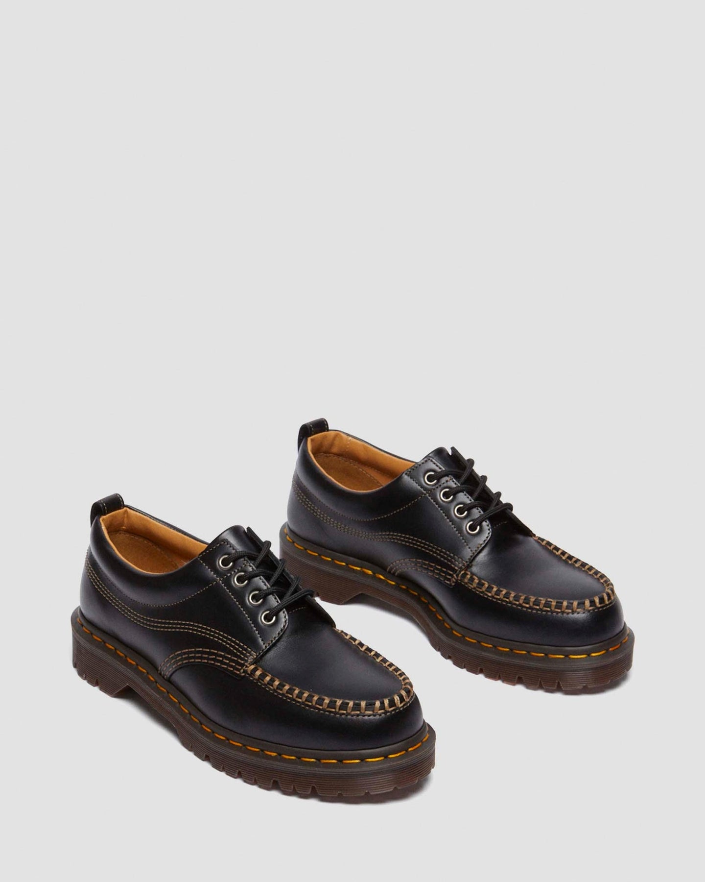Lowell 融合當代美感與經典工裝設計。這款四孔鞋以黑色Analine皮革製成,鞋領以舒適為主,飾以Moc Toe 鞋頭及縫線細節。堅固的 BEN 鞋底以我們的黃色縫線固定。